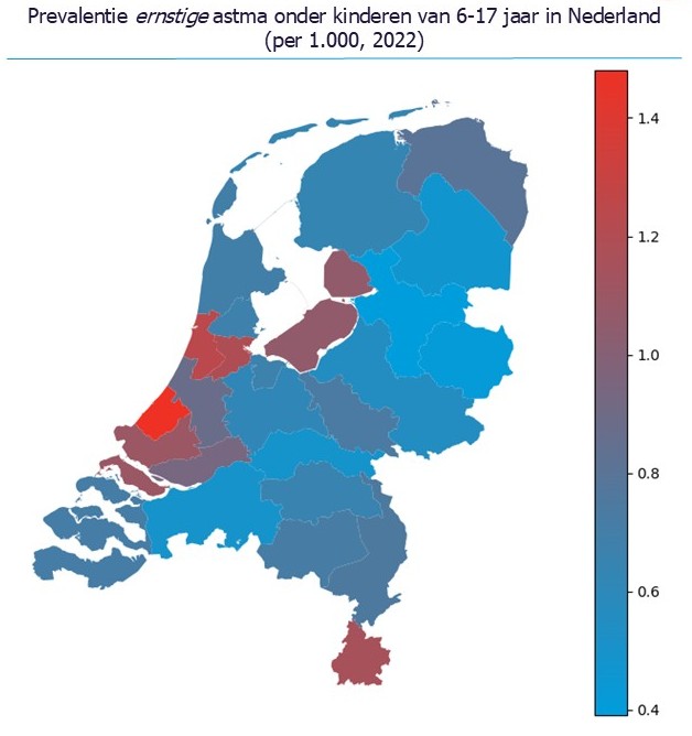 Het voorkomen van ernstige astma onder kinderen verschilt sterk tussen regio’s en populatiegroepen in Nederland